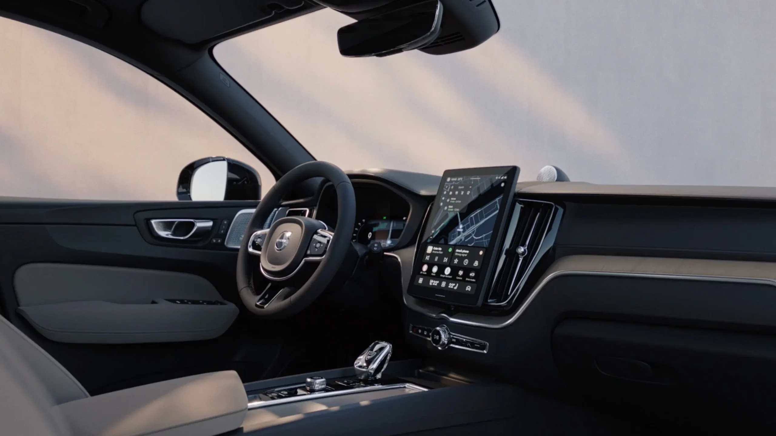 L’intérieur du XC60 reflète l’élégance du design scandinave. Les matériaux nobles, les inserts en bois véritable et la finition soignée créent une atmosphère chaleureuse et raffinée. Le conducteur bénéficie d’un écran central vertical intégrant le système multimédia connecté avec services Google, navigation et connectivité smartphone.
