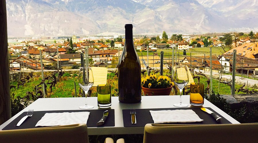 Installée face au Château d’Aigle, La Pinte du Paradis bénéficie d’un environnement rare. La terrasse, particulièrement appréciée aux beaux jours, offre une vue privilégiée sur les vignobles environnants et les reliefs alpins.